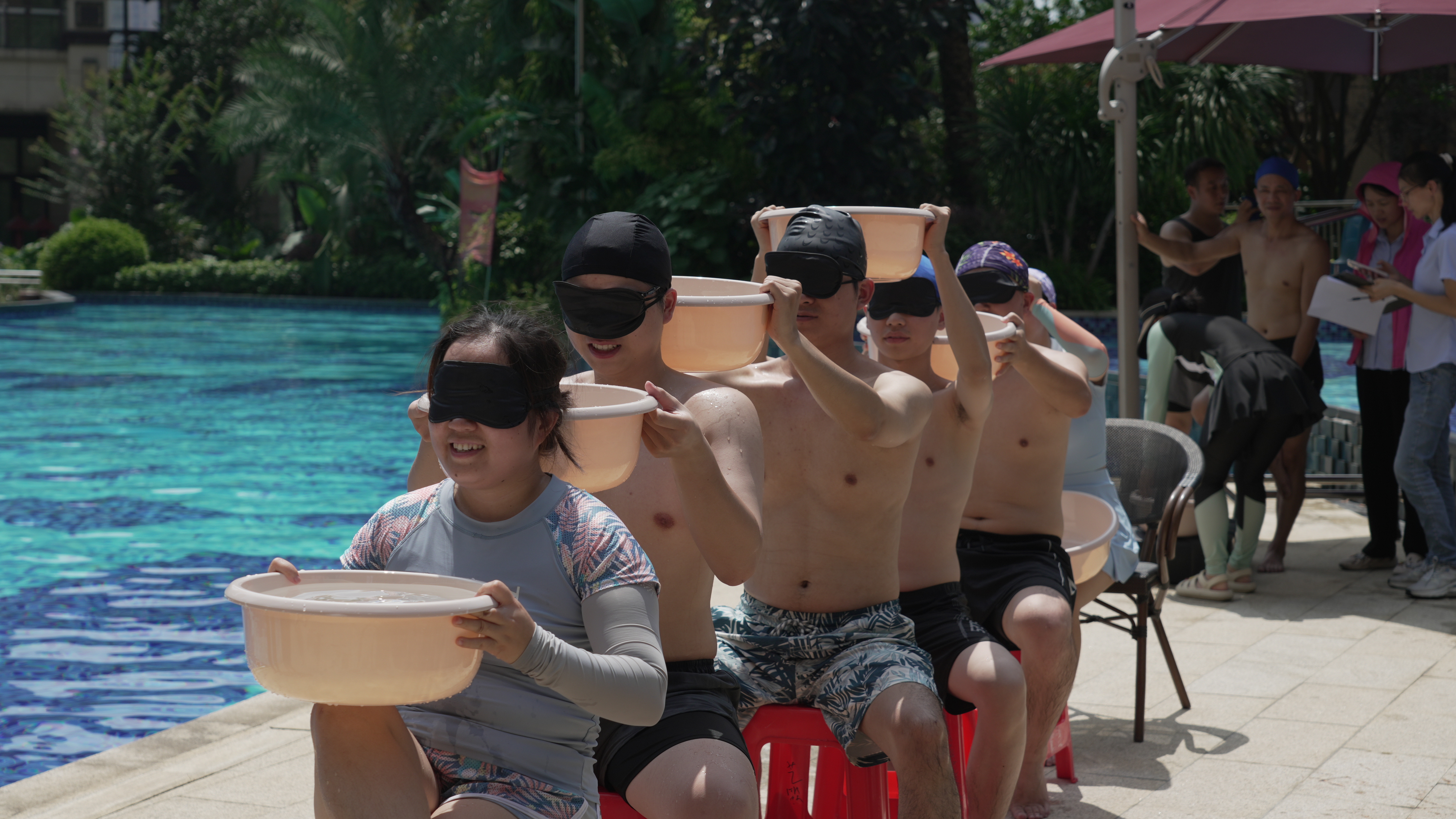 本次運動會設置了三項趣味與協(xié)作并重的水上項目:蒙眼接水挑戰(zhàn)、皮劃艇競速和水上氣排球賽。各代表隊奮勇爭先、默契配合,在歡聲笑語中展現(xiàn)出福達人昂揚向上的精神風貌。